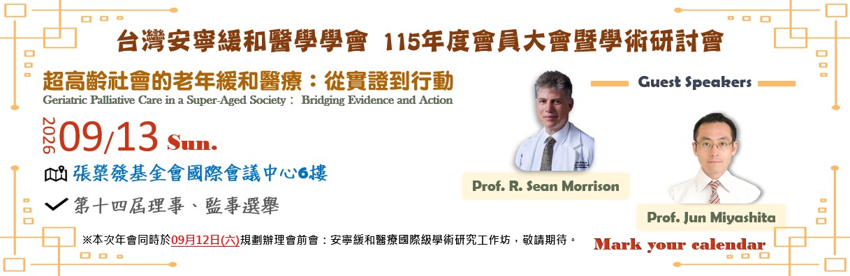 | 【年會精華影片】114年度會員大會暨學術研討會 | 精進專業發展與領導力,永續安寧緩和療護 | 115/01/21 |
