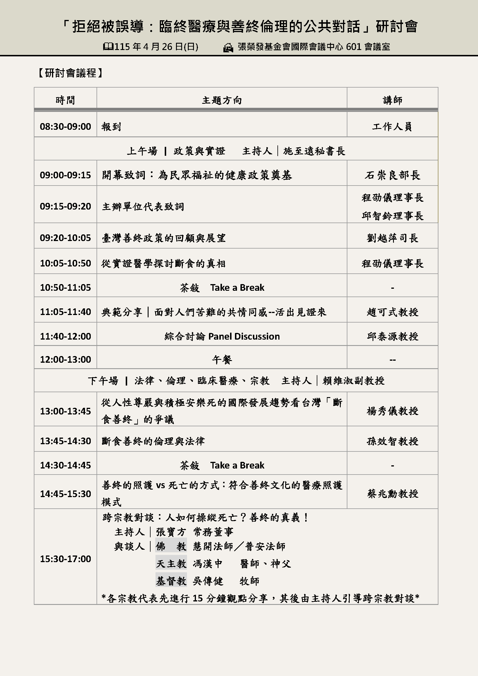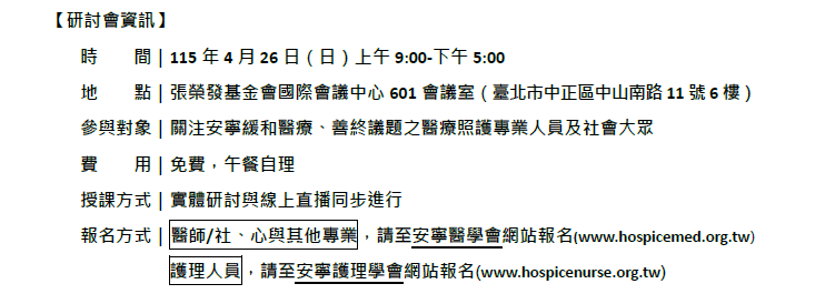 【一般民眾報名專區】「拒絕被誤導:臨終醫療與善終倫理的公共對話」研討會