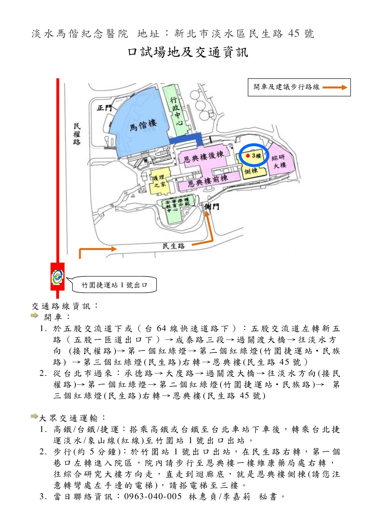 本週日(3/25)安寧緩和醫學專科醫師甄審口試考場交通圖&聯絡資訊