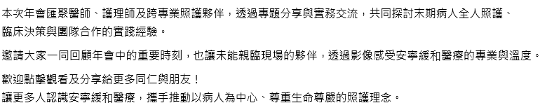 【年會精華影片】114年度會員大會暨學術研討會 | 精進專業發展與領導力,永續安寧緩和療護