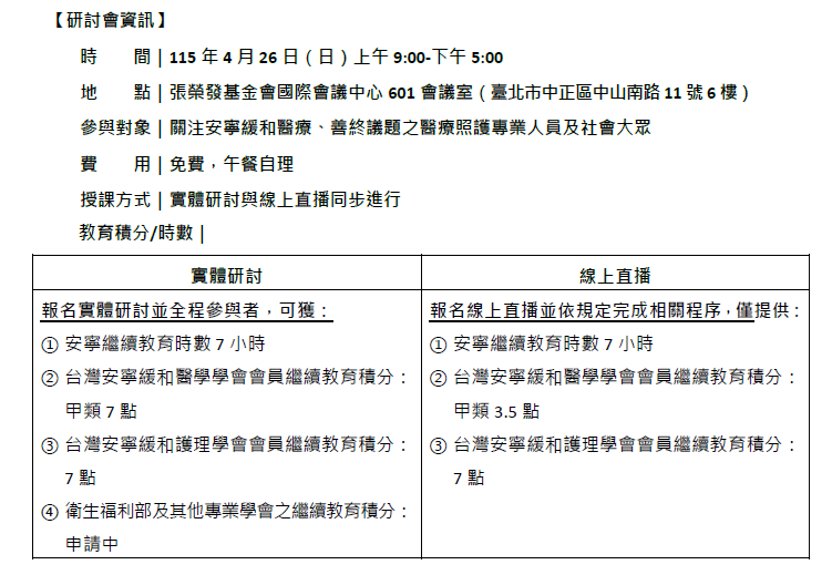 【簡章】「拒絕被誤導:臨終醫療與善終倫理的公共對話」研討會