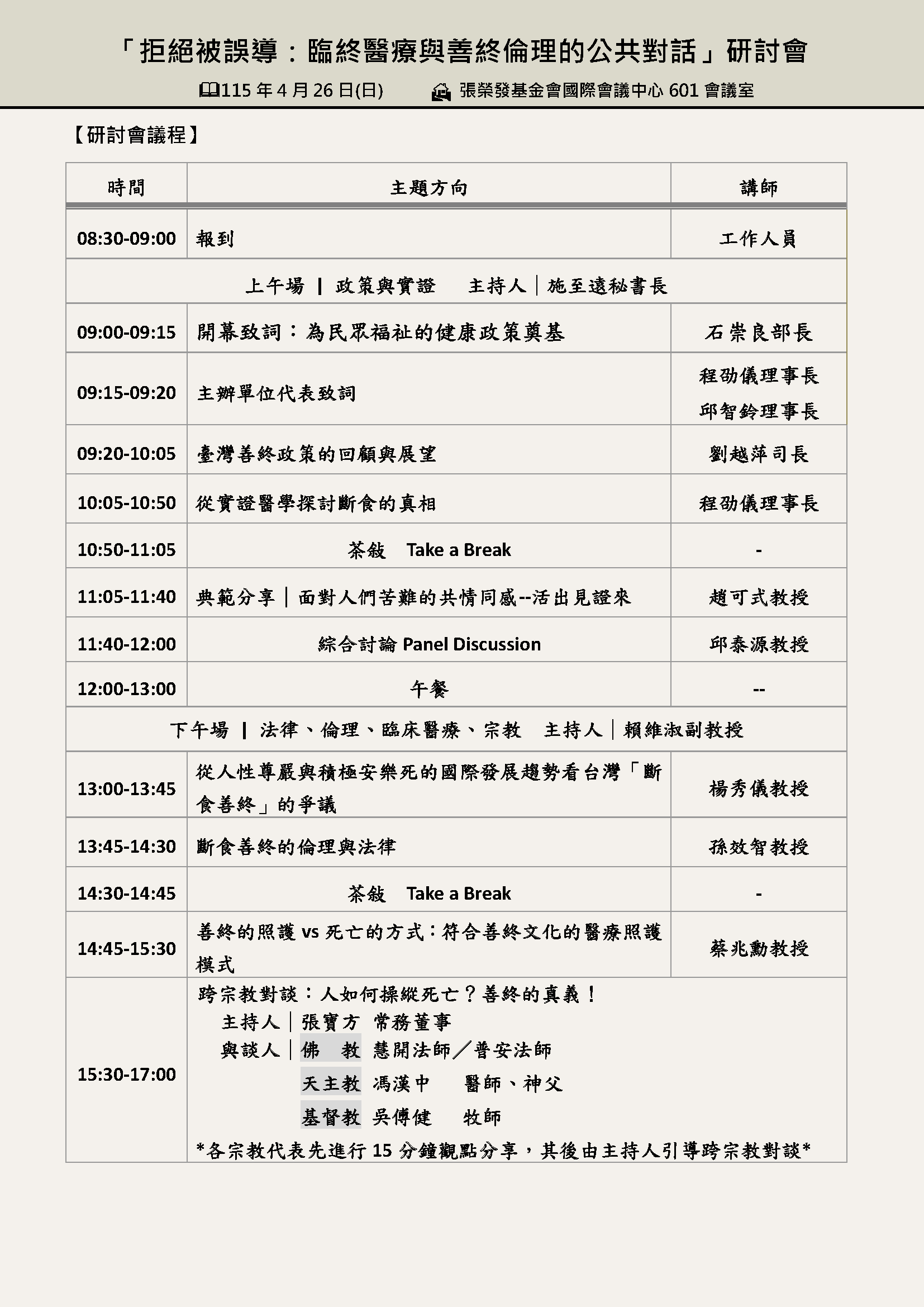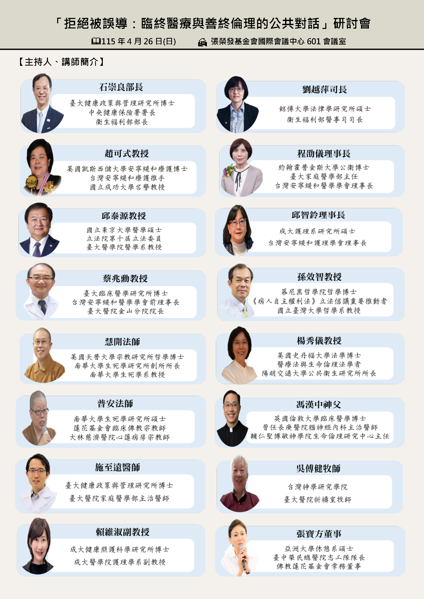 【開放報名】「拒絕被誤導:臨終醫療與善終倫理的公共對話」研討會